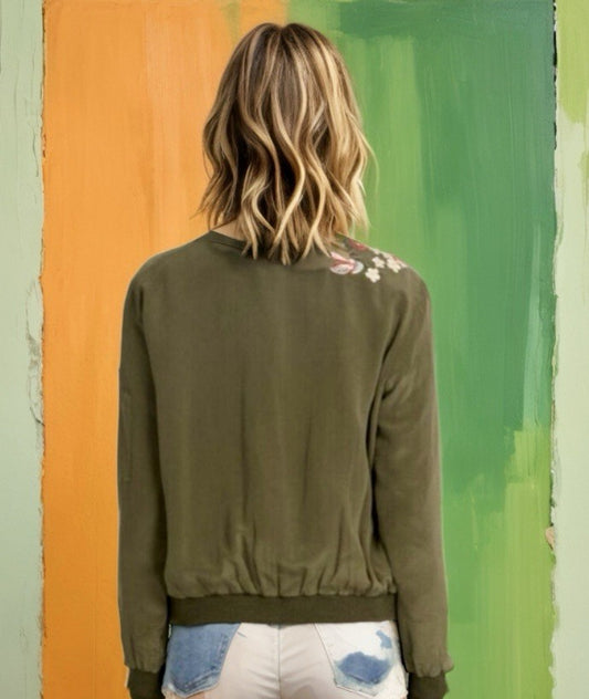 Johnny Was PXXL Silk Embroidered Bomber Jacket Flight Coat petite $495