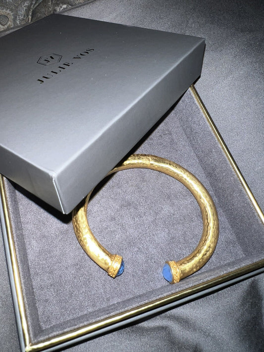 Julie Vos Hinged Bangle Bracelet Blue Iridescent Glass 24k Gold Plated