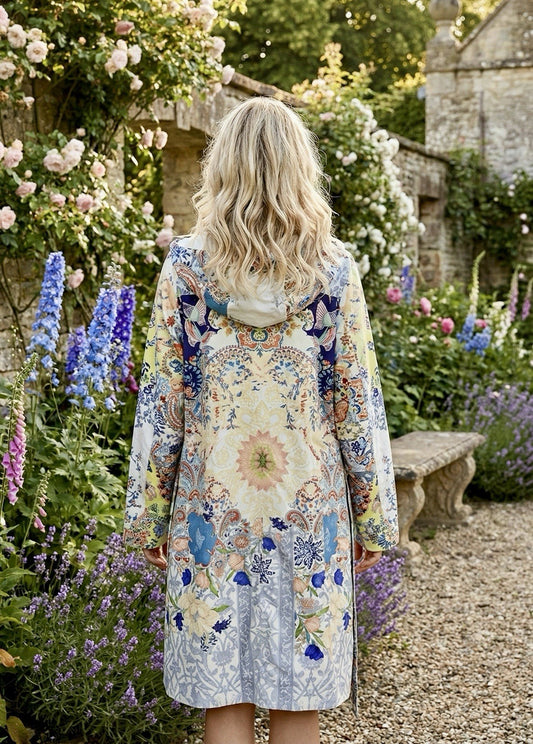 Johnny Was M Medium Reversible Raincoat Rain Jacket Coat Wrap Hooded Kimono