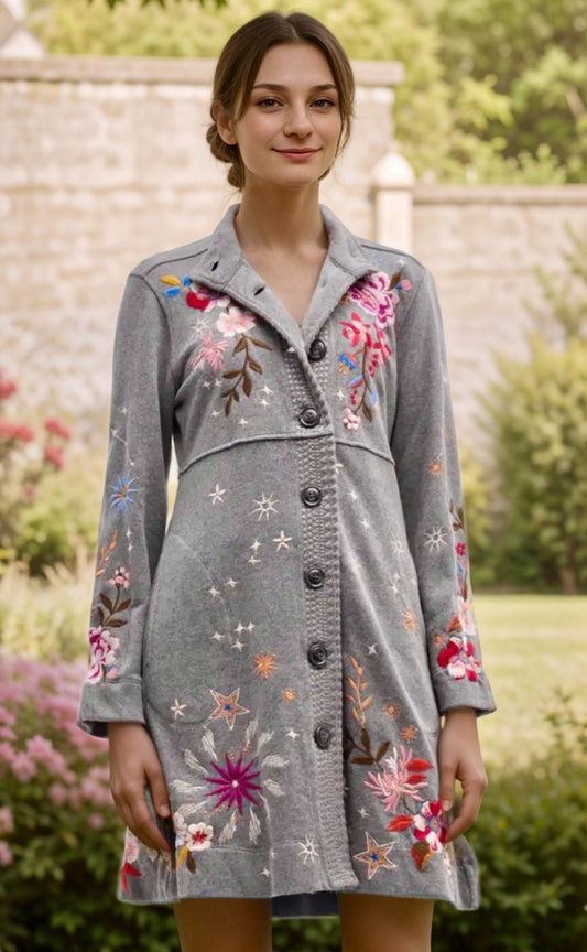 Johnny Was 3X Plus Soft Grey Military Jacket Coat French Terry Kimono Wrap