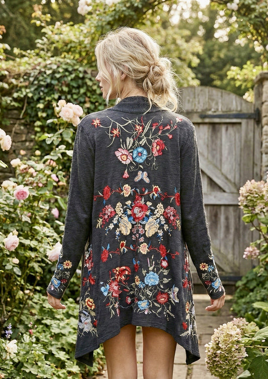 Johnny Was L Cardigan Sweater Jacket Coat Wrap Duster Embroidered $498 Retai