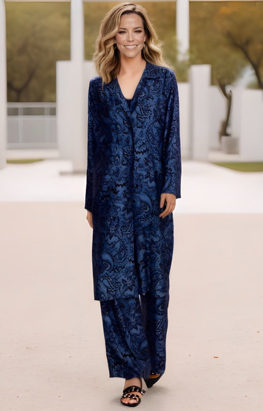 Johnny Was L Large Deep Blue Long Kimono Duster Wrap Jacket Coat Pockets