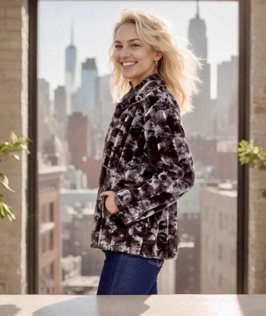 Johnny Was XL Black & Grey Faux Fur Coat Jacket Silk Lining Pockets Soft