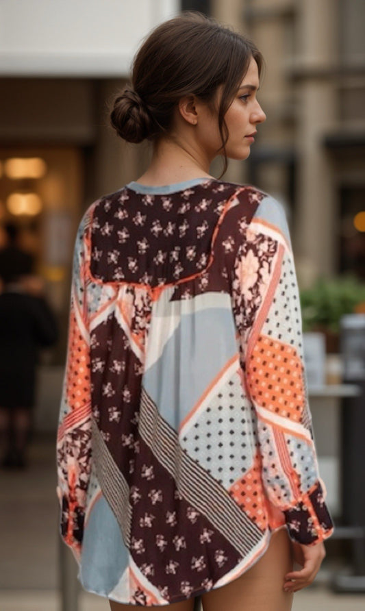 Johnny Was 3X 3XL Silky Peasant Blouse Tunic Top Kimono Sleeves Lightweight