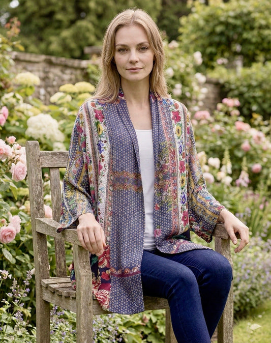 Johnny Was XXL Kimono Jacket Wrap Lightweight Cool OVERSIZED Red White & Blue