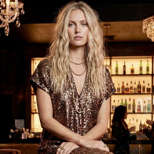 JOHNNY WAS XXL Gold Sequin Shift Dress Silk Lined Mini Party V-neck BOHO