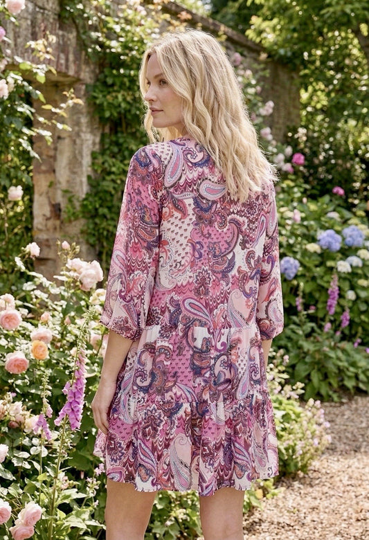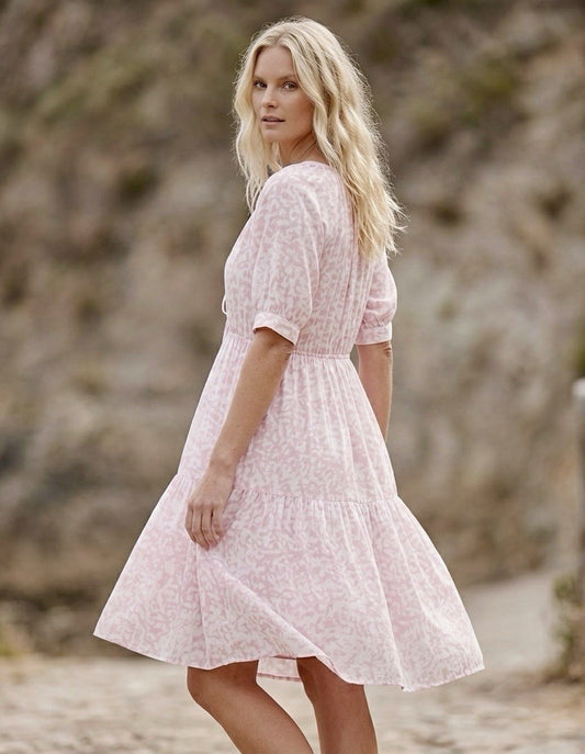 Johnny Was M/L Large Pink & White Mini Dress & Slip Babydoll Cotton Cool