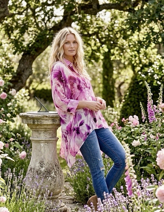 Johnny Was 3X Silky Blouse Top Long Sleeve Shirt Button Up Gorgeous Floral Tunic