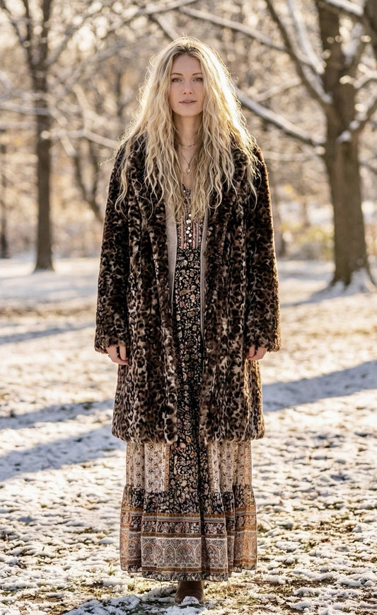 Johnny Was XL 1X Faux Fur & Silk Lined Leopard Animal Print Coat Jacket Wrap