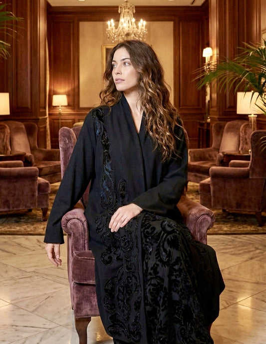 Johnny Was 3X Plus Black Velvet Kimono Wrap Jacket Cardigan Duster Embroidery