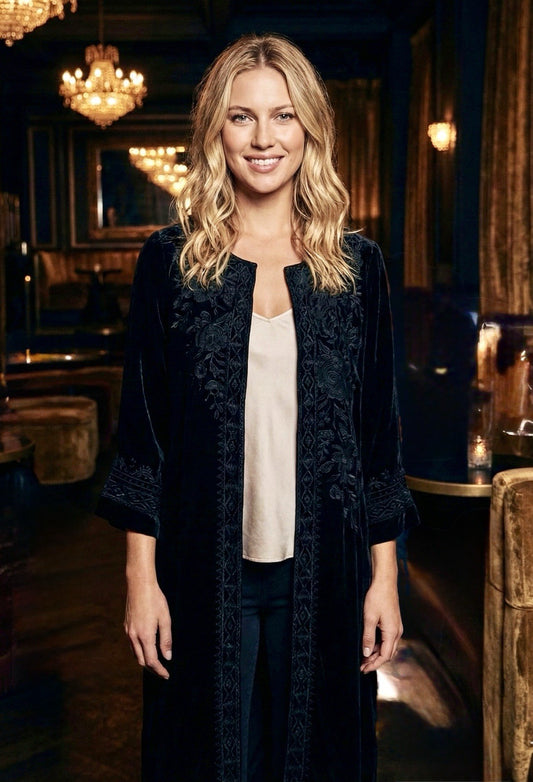 Johnny Was XL Long Black Velvet Kimono Wrap Jacket Duster Oversized