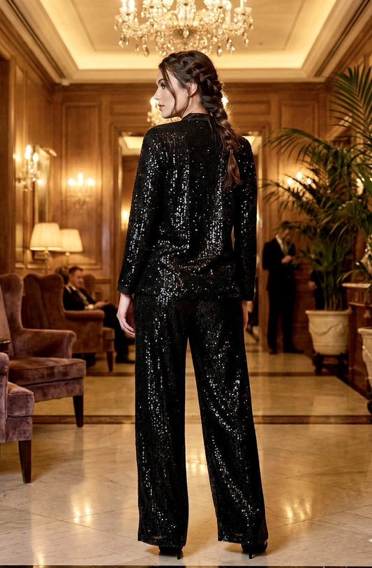 Johnny Was XL Black Sequin Blouse Silk Lined Top Dressy Jacket Button Up