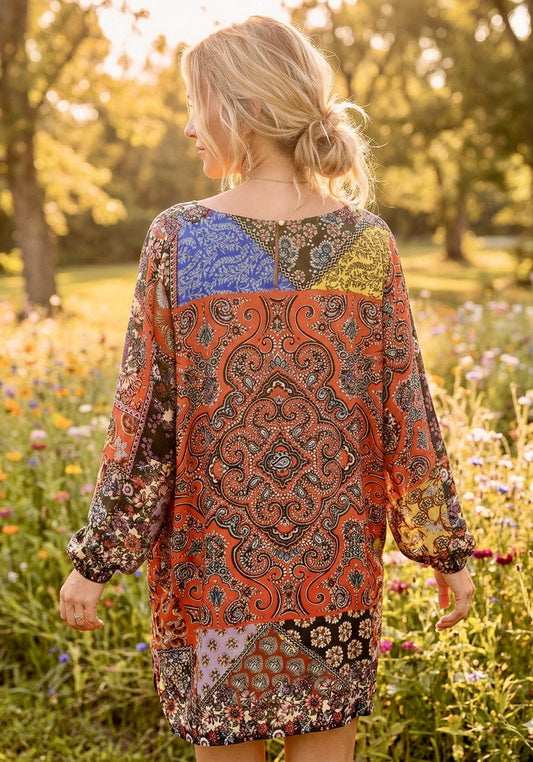 Johnny Was XXL 100% Silk Tunic Top Shift Mini Dress Patchwork Lightweight