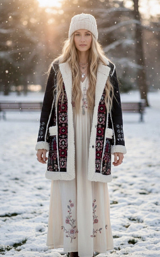 Johnny Was 2X Faux Suede Sherpa Coat Jacket Wrap Shearling Lined BOHO