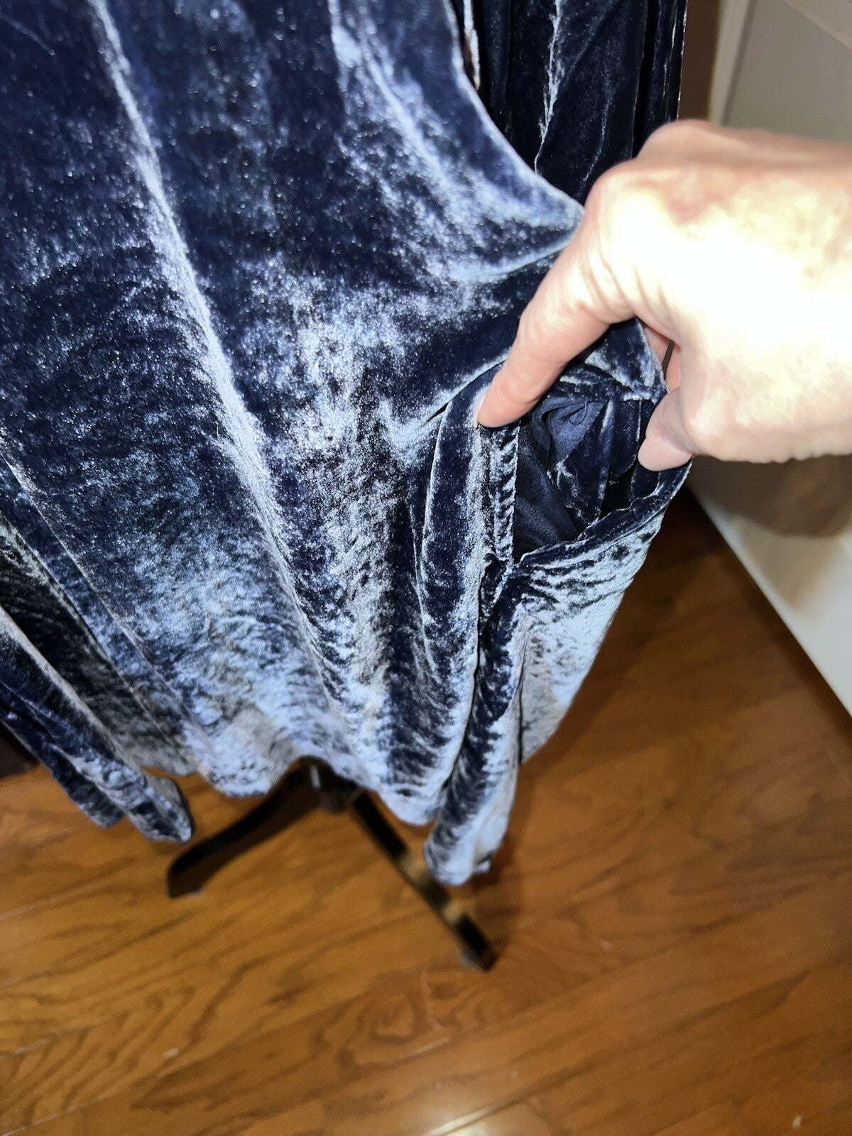 This stunning Johnny Was L dress is the perfect addition to any wardrobe. The blue velvet fabric is accented with peacock feather embroidery, adding a touch of elegance to the oversized, long kimono style dress. The dress is perfect for any occasion and is sure to turn heads. It is a must-have for any fashion-forward woman.