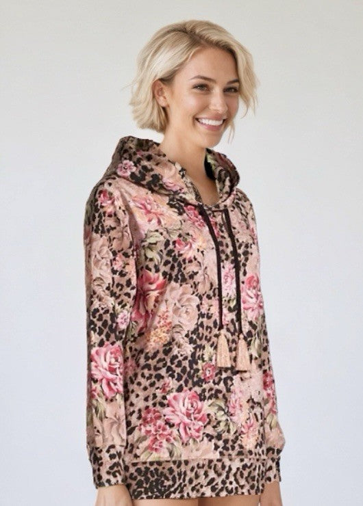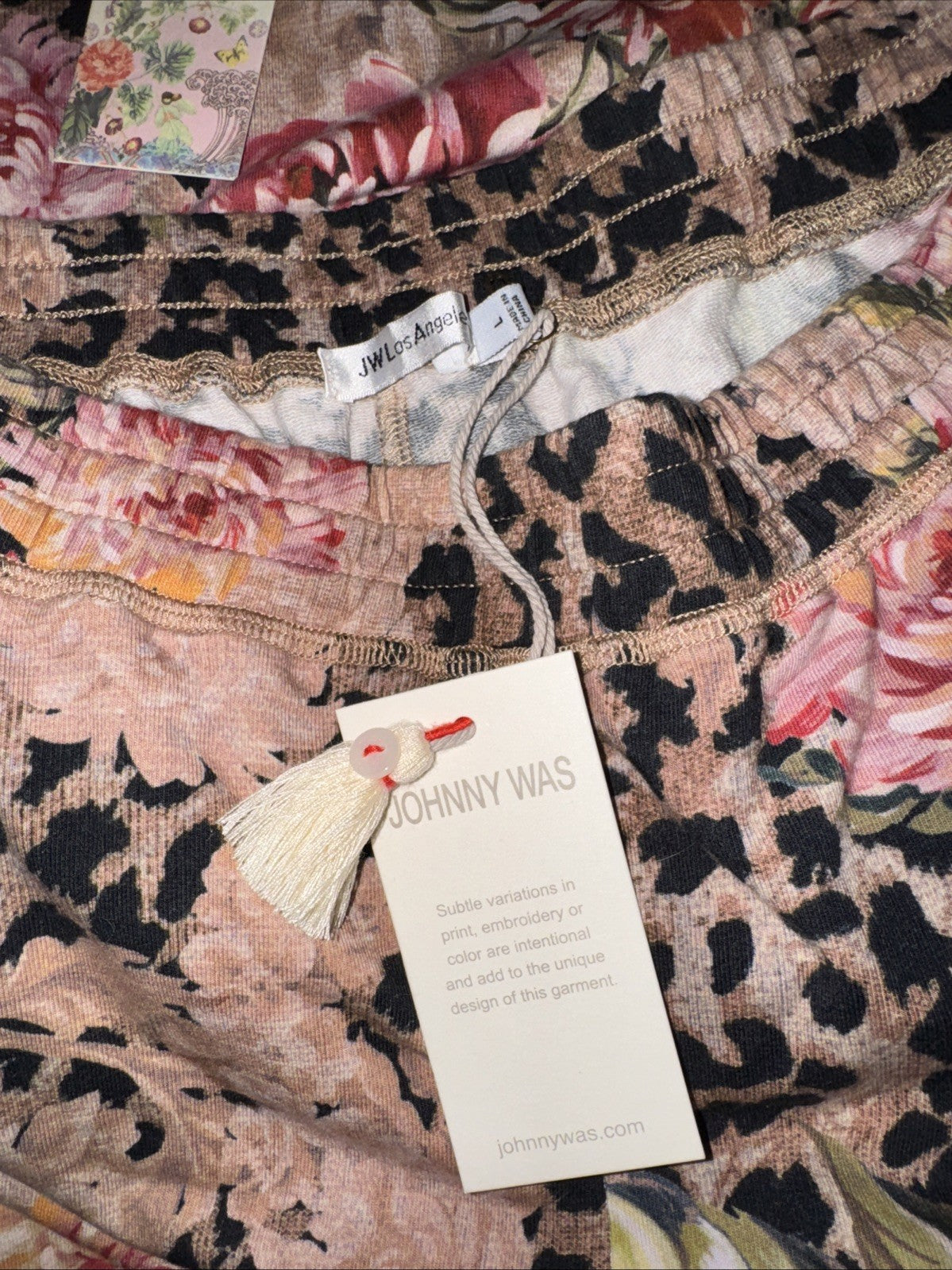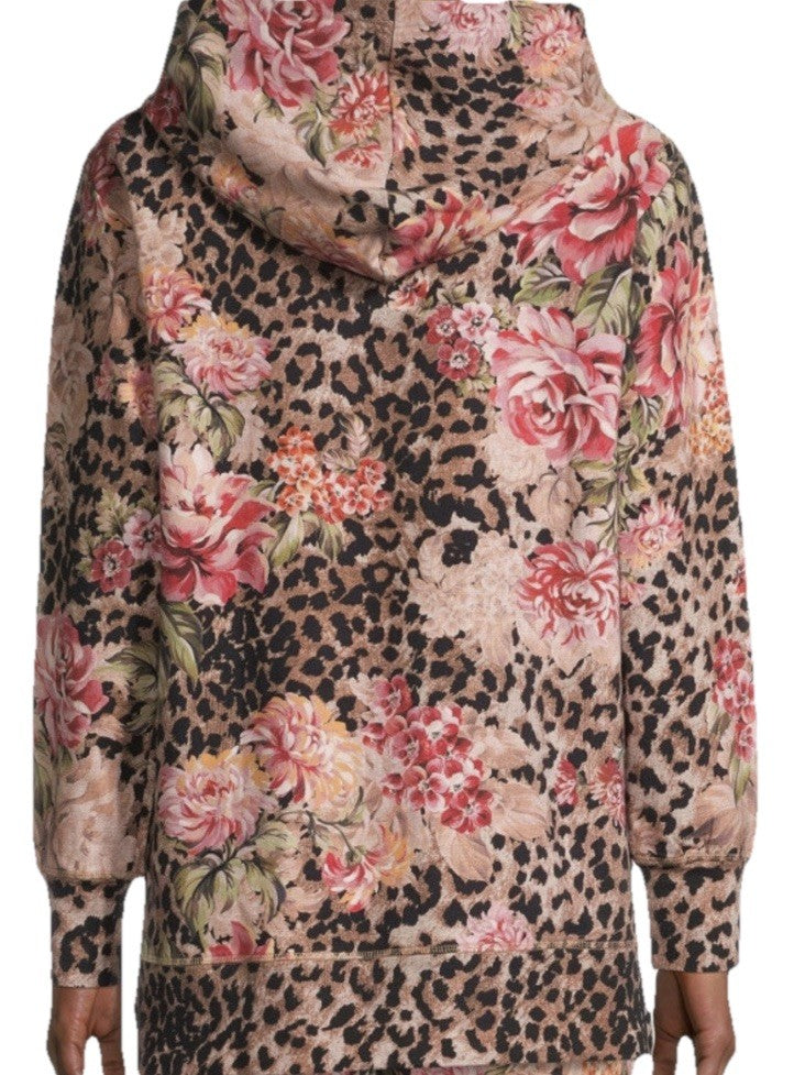 Johnny Was 2pc L Hoodie Top & Pants Track Set Leopard Print & Roses SOFT