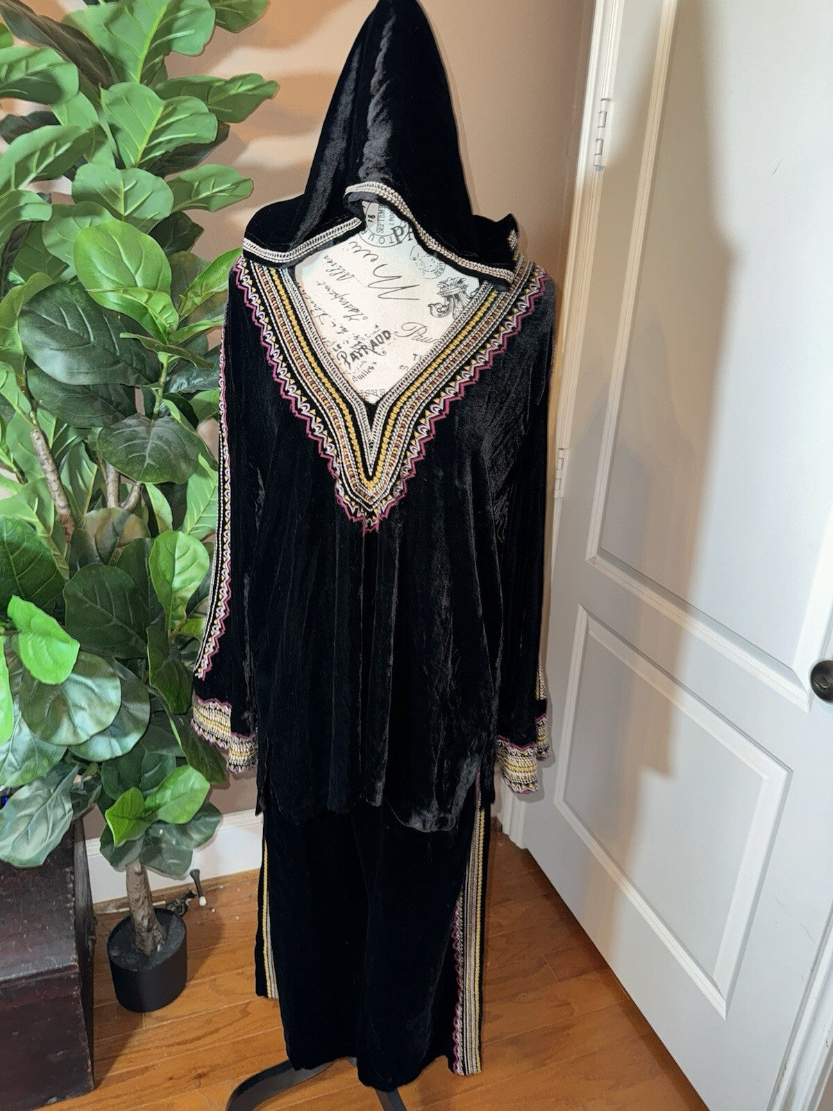 Johnny Was 2pc XL & L Black Velvet Hoodie & Wide Leg Pants Track Set RARE
