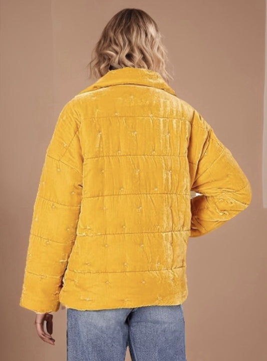 Johnny Was L Mustard Yellow Velvet Puffer Coat Jacket Soft Warm $595 Retail