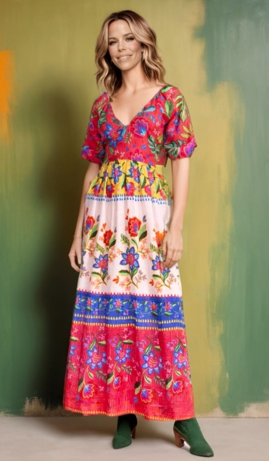 Johnny Was 2X Plus Midi Dress Long Flowy Colorful Kimono Sleeves $398 Retail