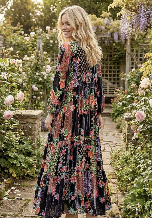 Johnny Was XL Burnout Velvet Maxi Dress Black Long Bohemian $575 Retail New
