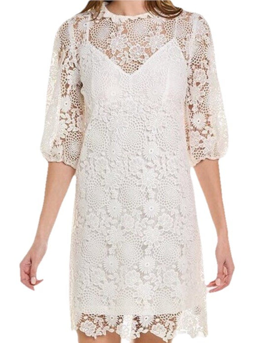 Johnny Was XL White Lace Mini Shift Dress Lightweight Cool Wedding Party