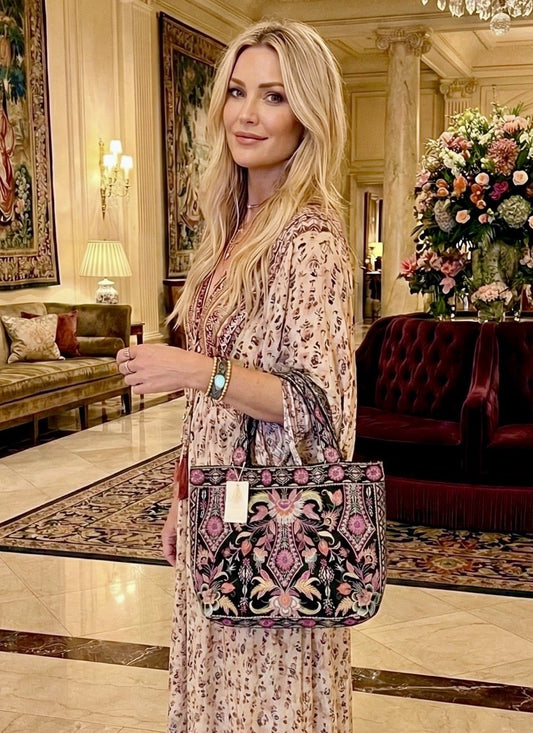 Johnny Was Large Black Velvet Hobo Bag Tote Purse Embroidered Crossbody
